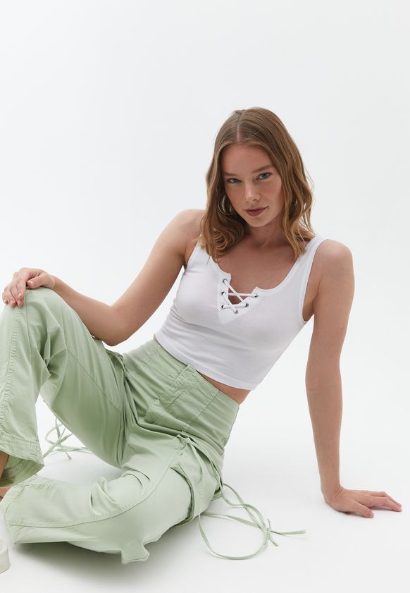 Cotton Singlet with Lace Detail OX-PAKLACENECK1