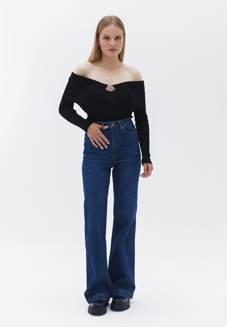 Black Boat Neck Knitwear Sweater