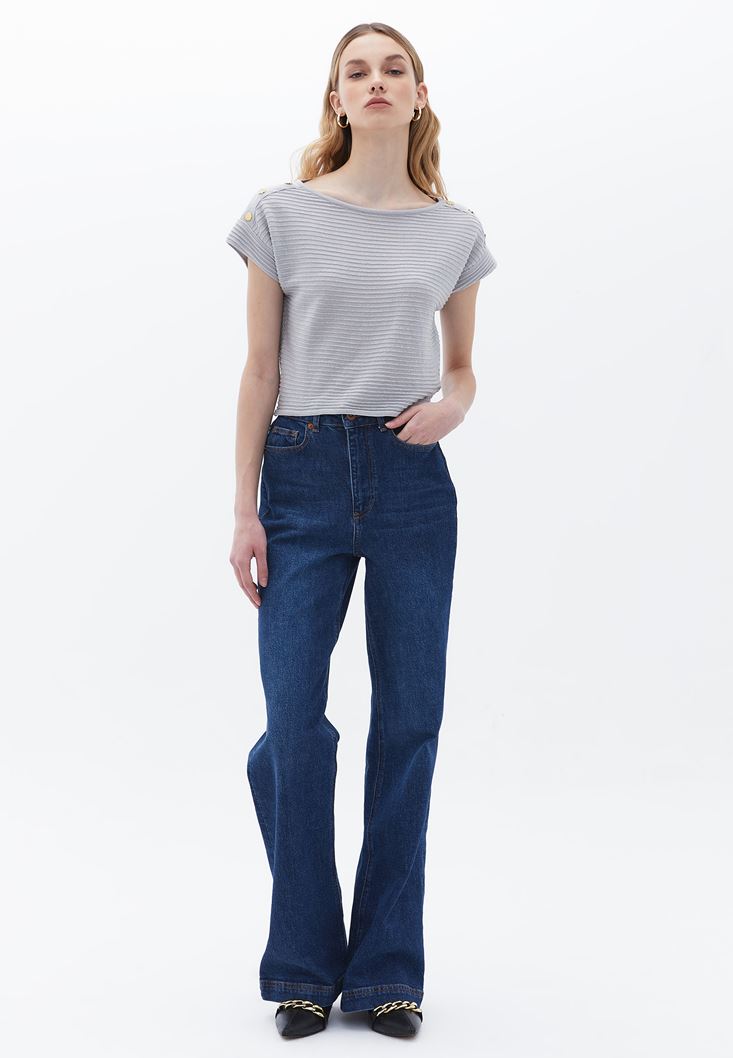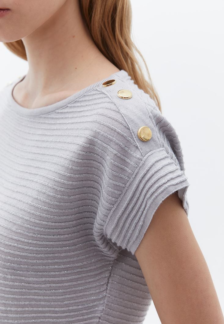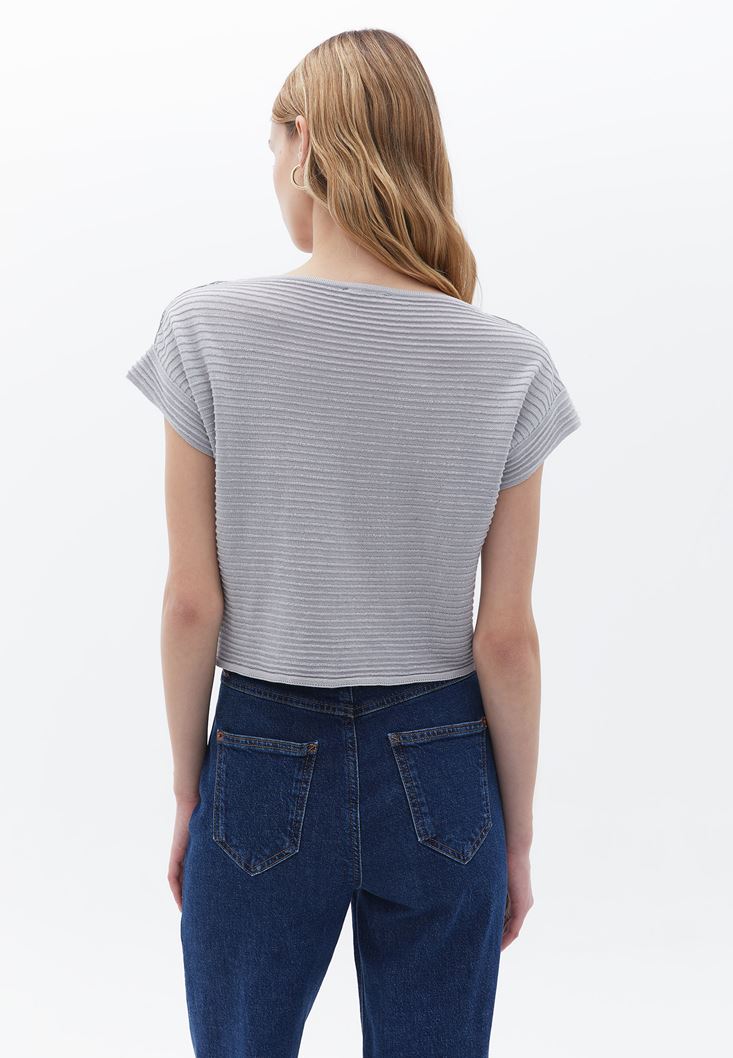 Grey Boat Neck Sweater With Glitter