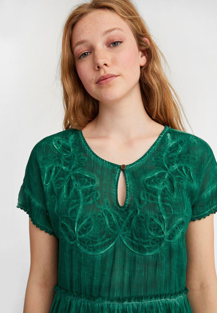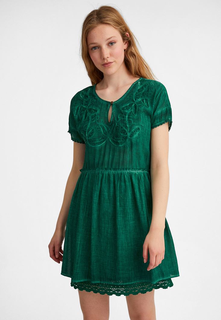 Green Embroidery Mini Dress