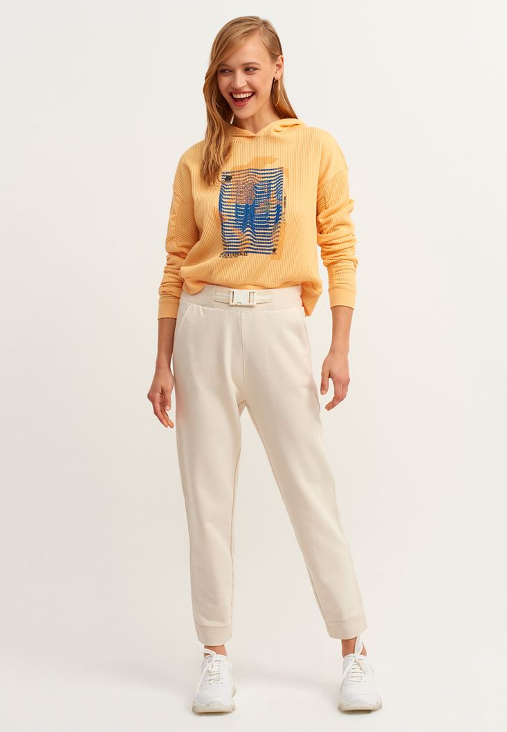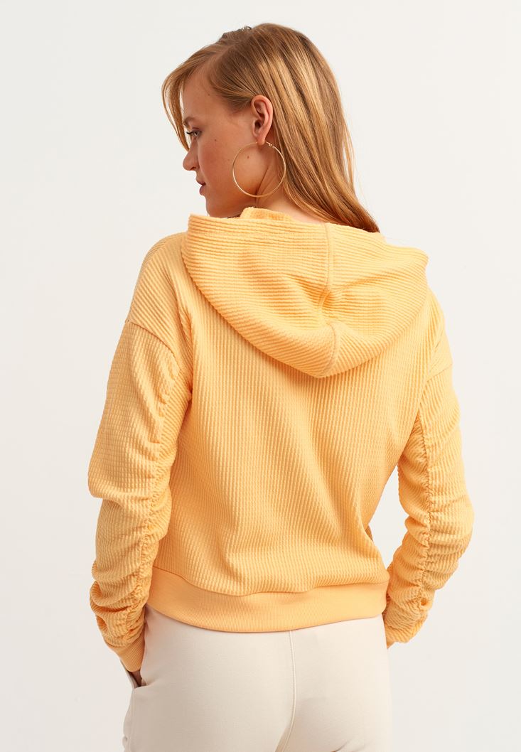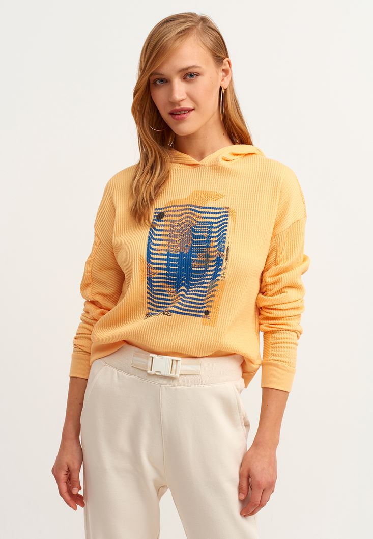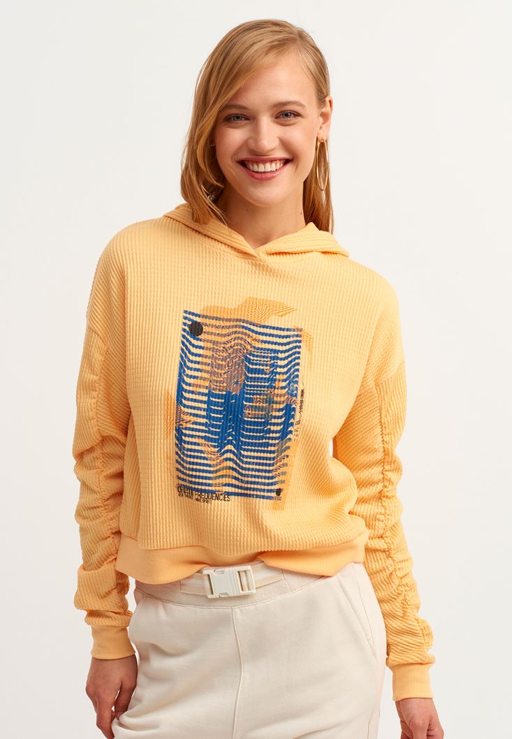 Yellow Gathered Artwork Printed Sweatshirt