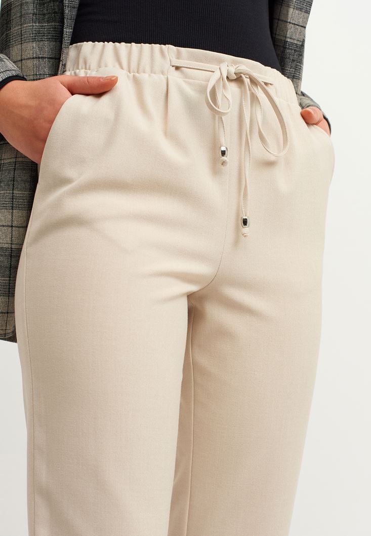 Beige High Rise Elastic Belly Trousers