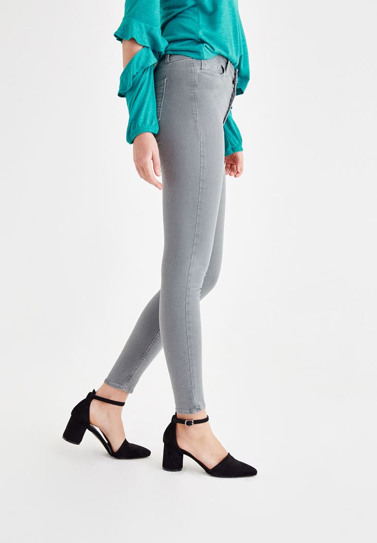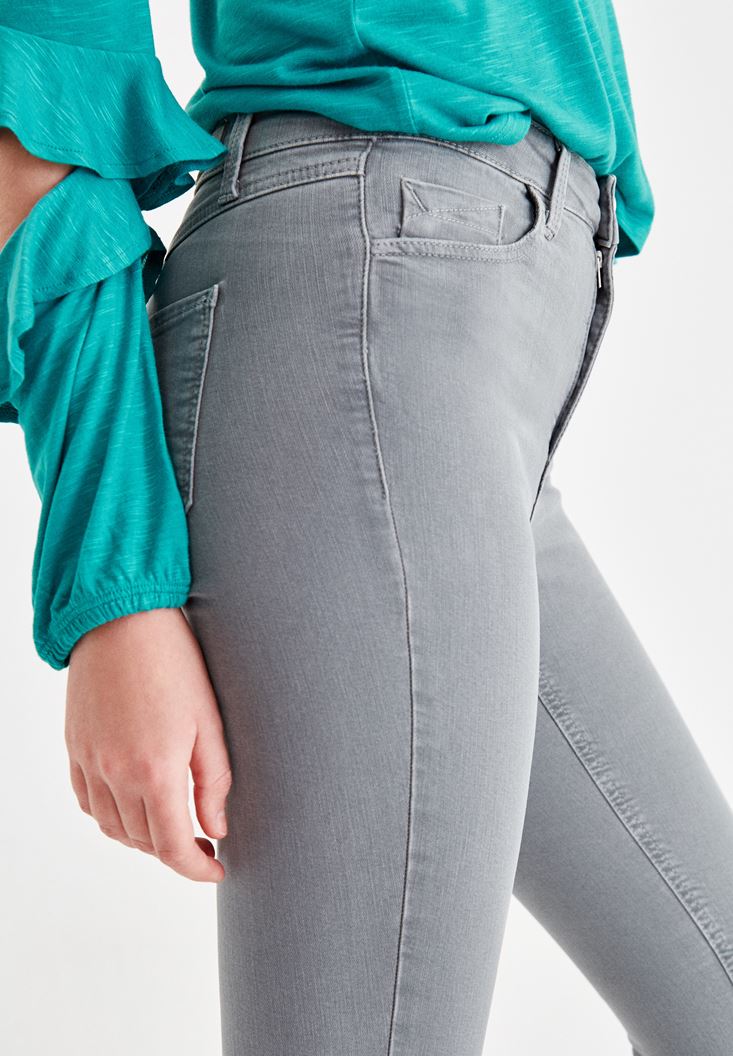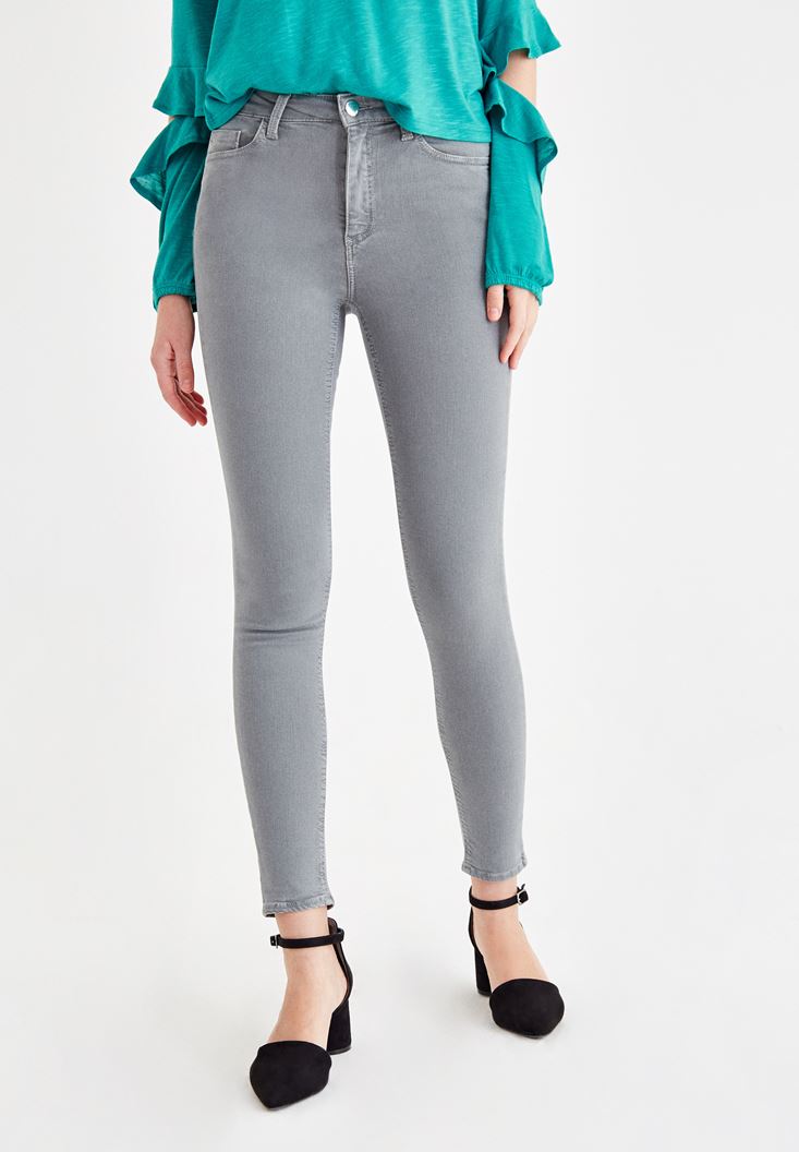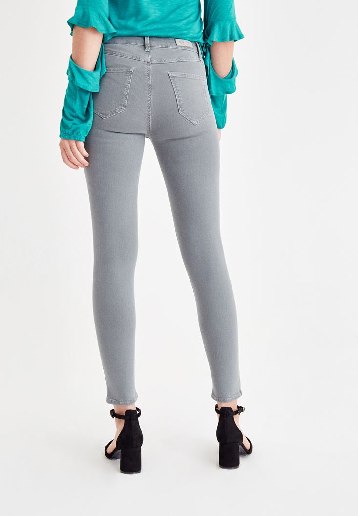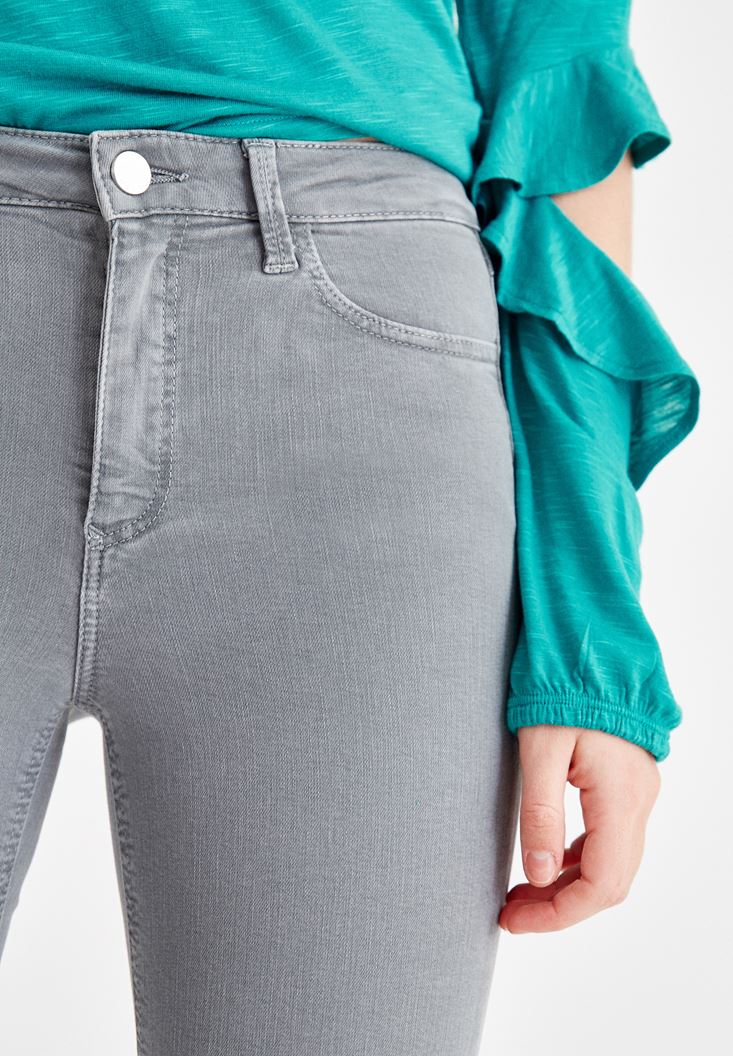 Grey High Rise Pants with Details