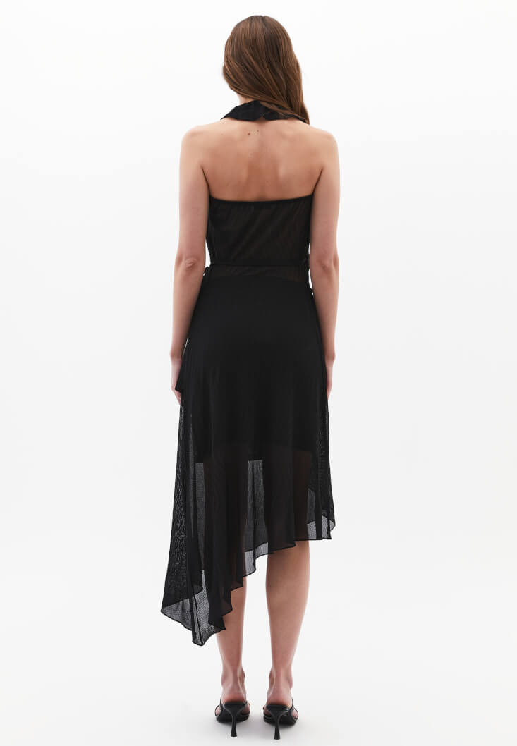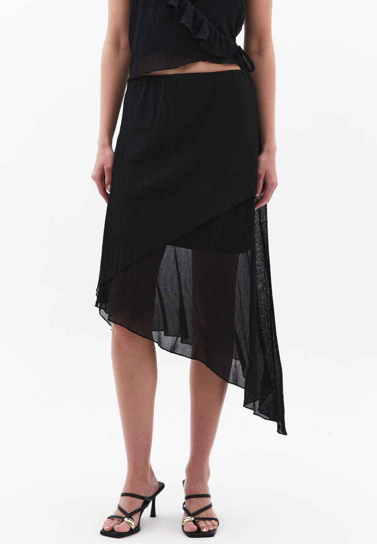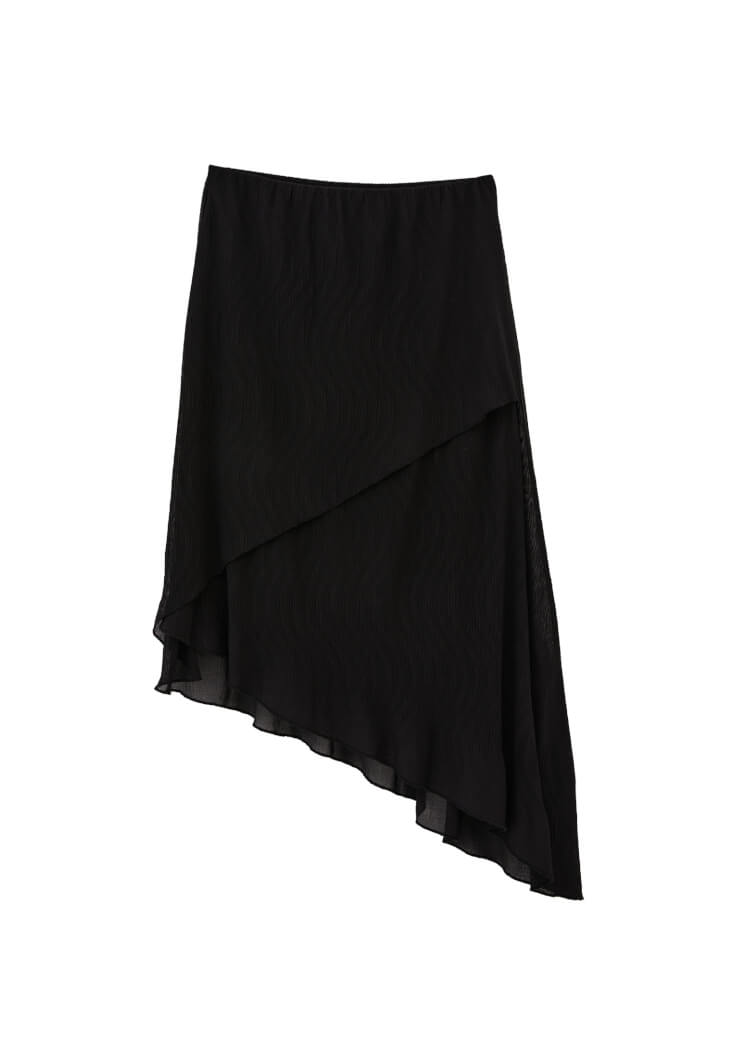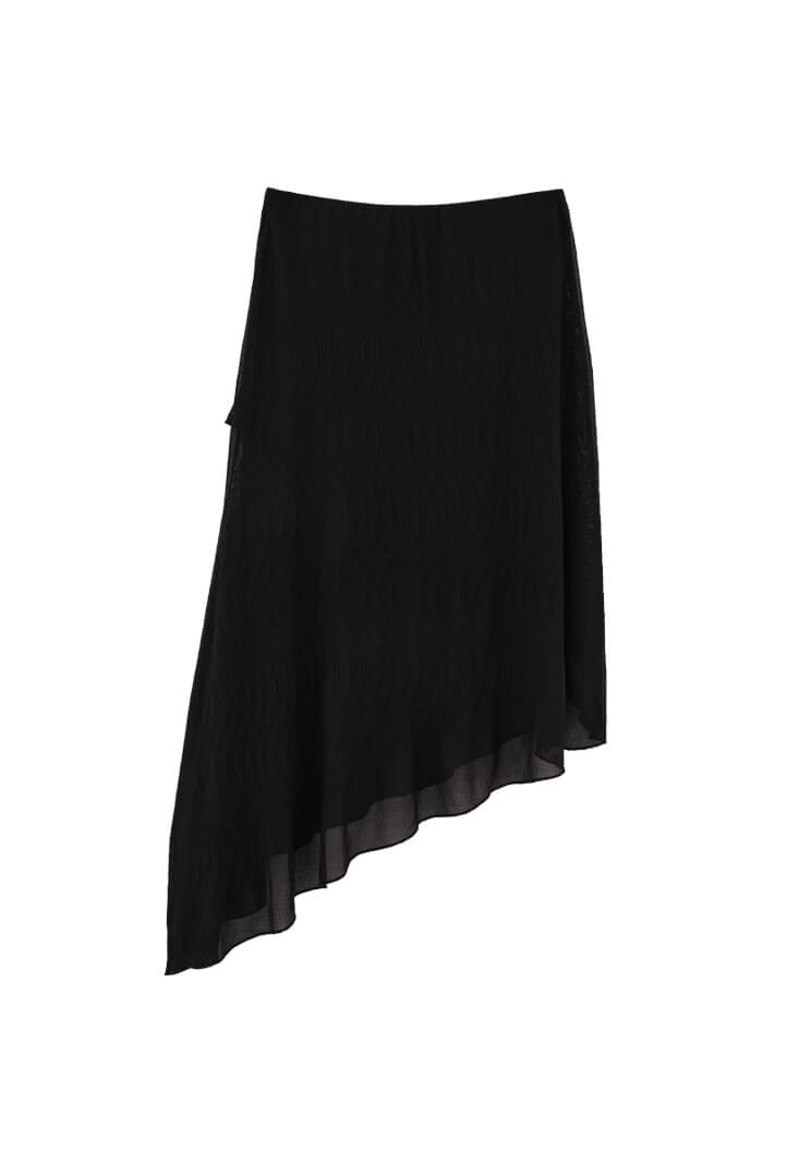 • Women Black High-Waisted Asymmetric Long Skirt