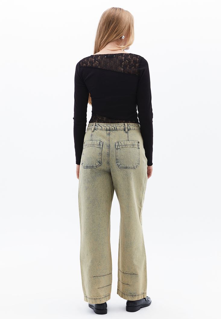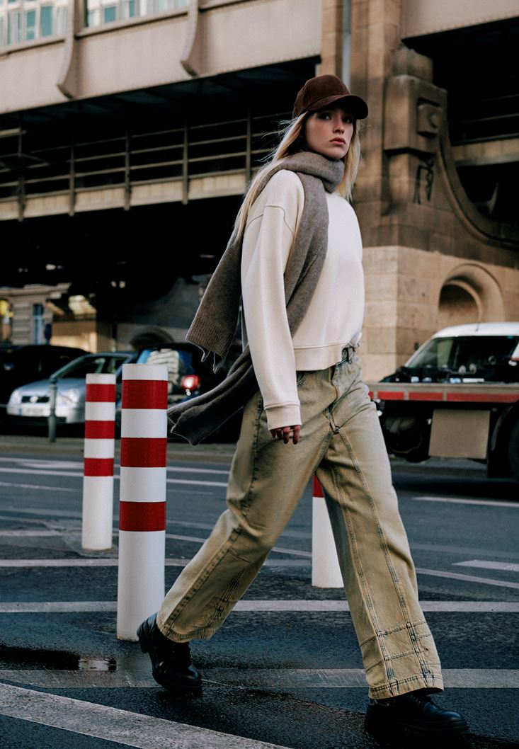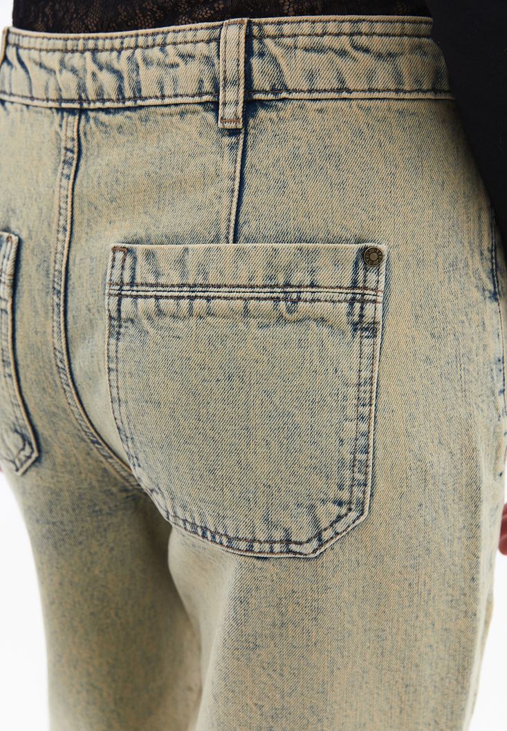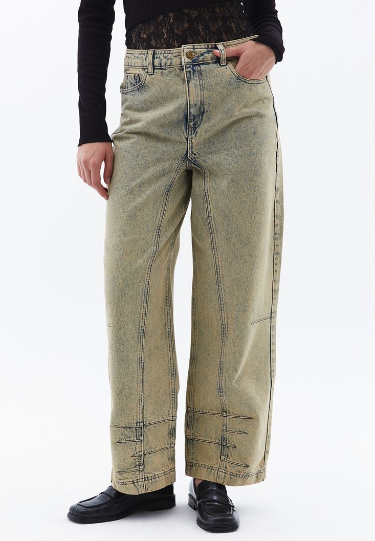 Sand Beige Mid Rise Baggy Fit Pants