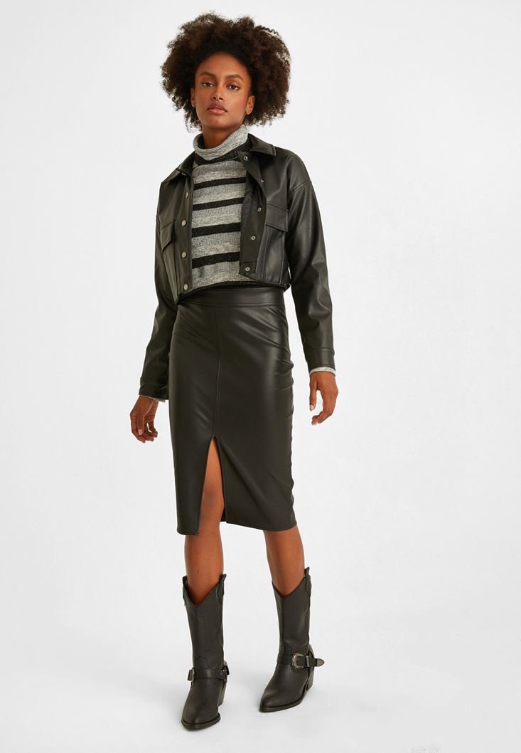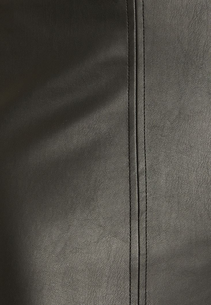 Mid Rise Faux Leather Skirt