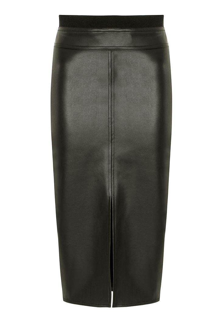 Black Mid Rise Faux Leather Skirt