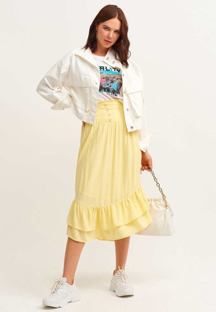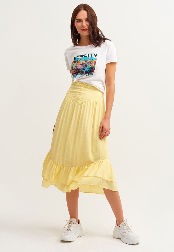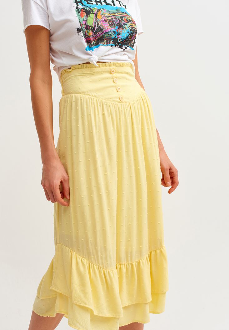 Yellow Midi Skirt With Slit Detail
