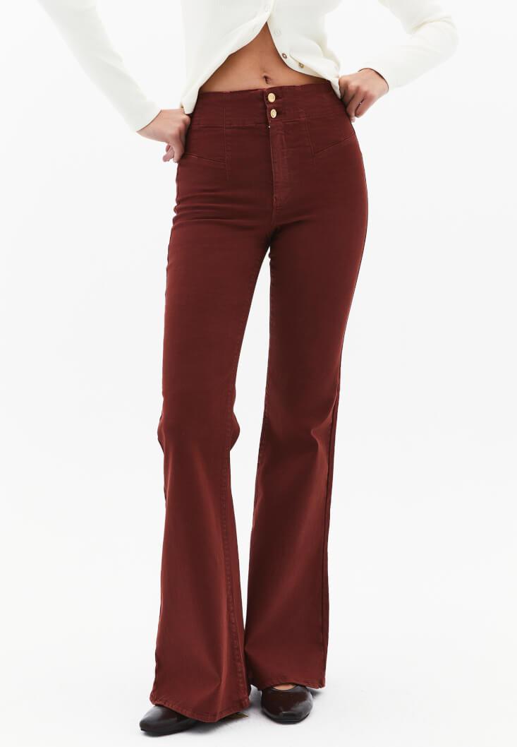 • Women Bordeaux Ultra High Rise Flare Pants