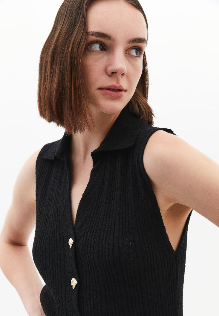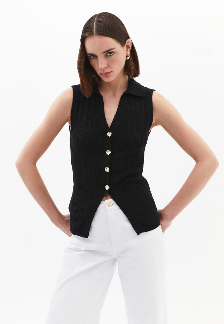 Classic V-Neck Cut – A timeless neckline that complements shirts, blouses, or worn solo.