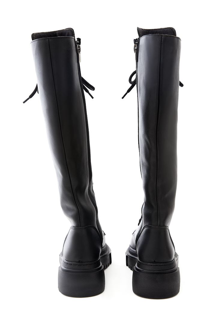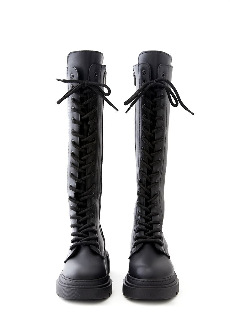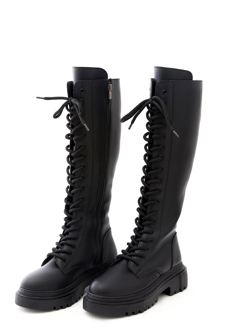 Vegan Leather Lace Up Tall Combat Boots